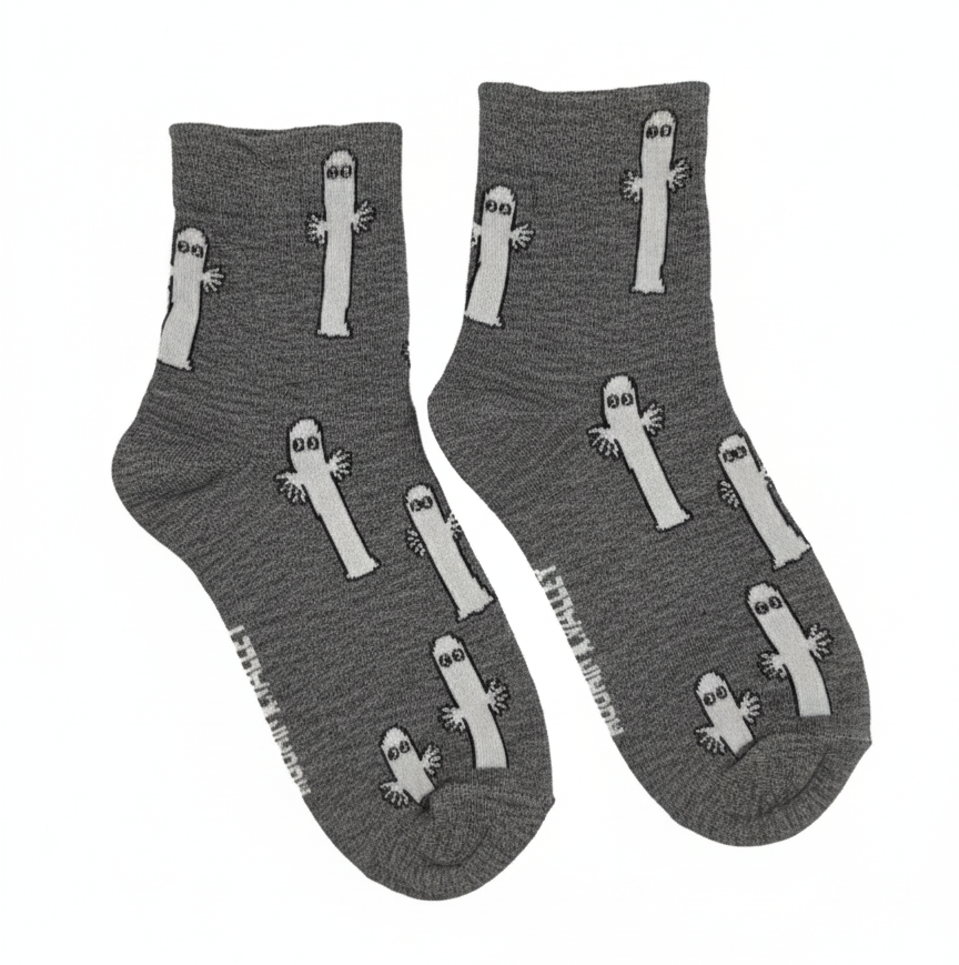 A hauntingly cute pair! These charcoal grey ankle socks are covered in a whimsical pattern of simple white cartoon ghosts. They're a playful and subtle choice for Halloween or year-round lovers of all things spooky.