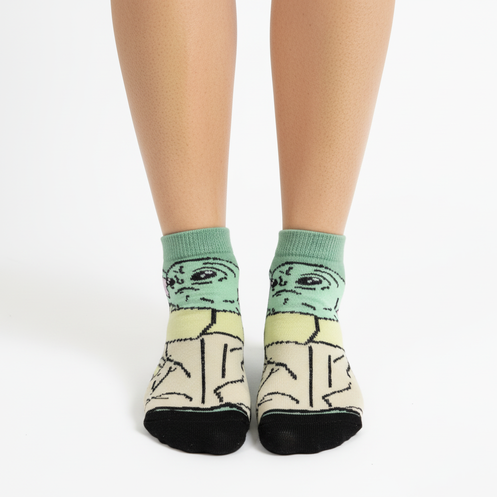 This is the way... to comfortable feet! Show your love for the galaxy's most adorable asset with these official-licensed ankle socks featuring a detailed image of Grogu (The Child) from The Mandalorian. The soft, breathable material ensures all-day comfort while the ribbed cuff keeps your little companion securely in place.