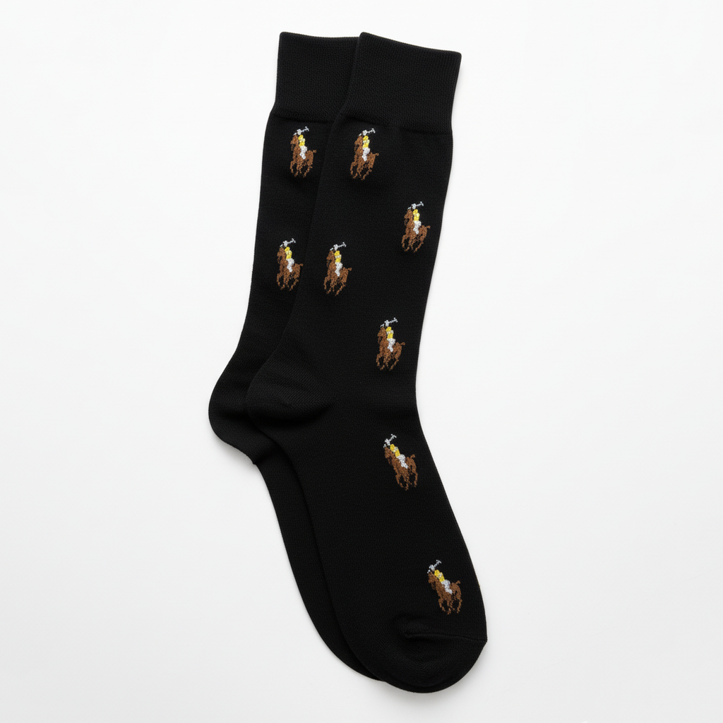 A sophisticated and subtle nod to classic luxury. These Solid Black Dress Socks are covered in a micro, repeating pattern of the signature Polo Pony in classic brown and yellow tones. The tonal design ensures they remain elegant and formal while adding hidden texture and brand recognition.