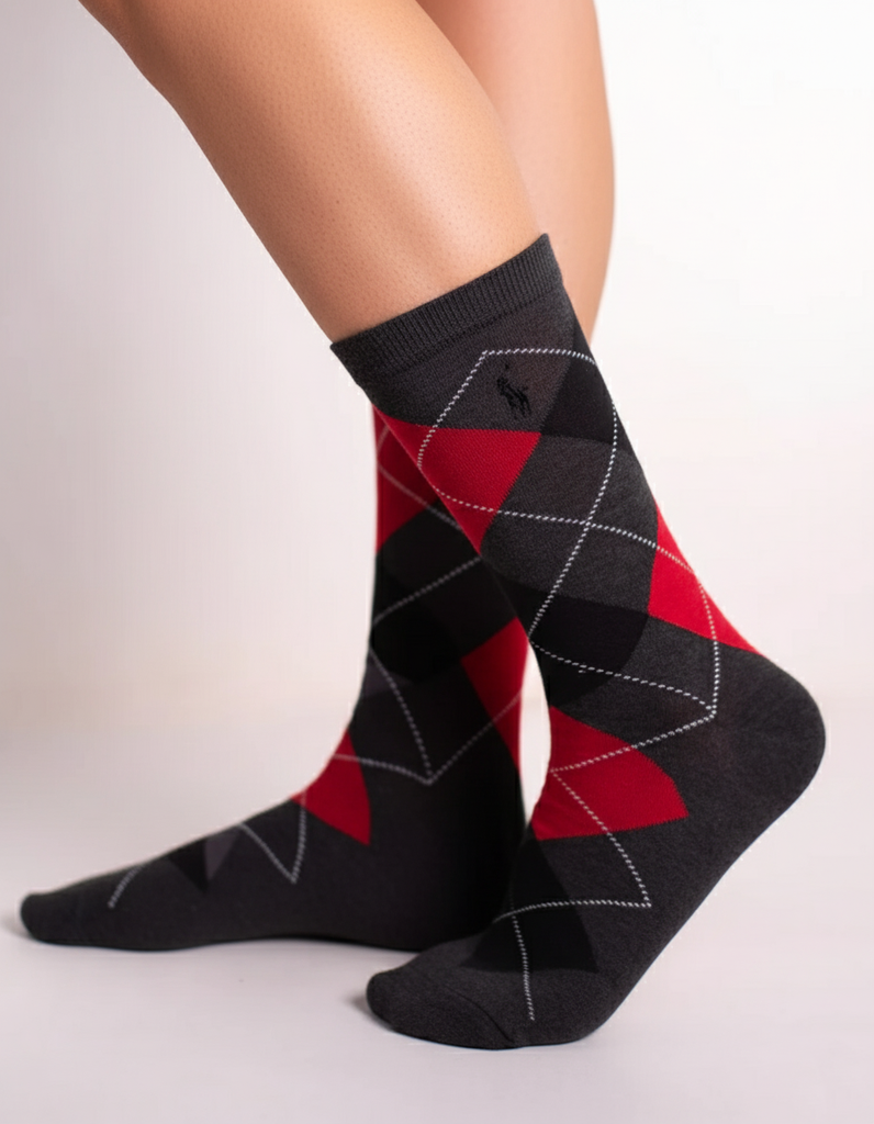 RL POLO CHARCOAL & RED ARGYLE DRESS SOCKS