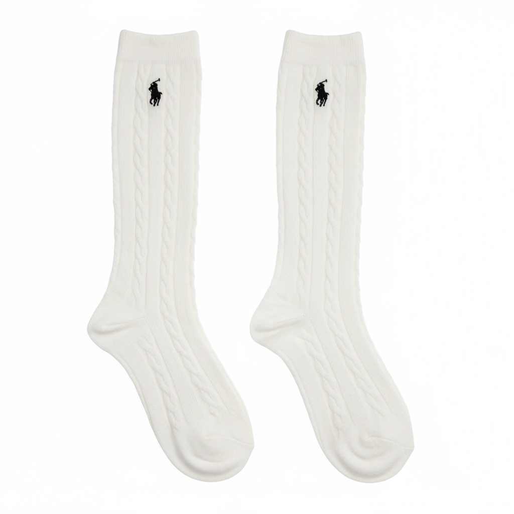 RL POLO CREAM CABLE KNIT KNEE-HIGH SOCKS