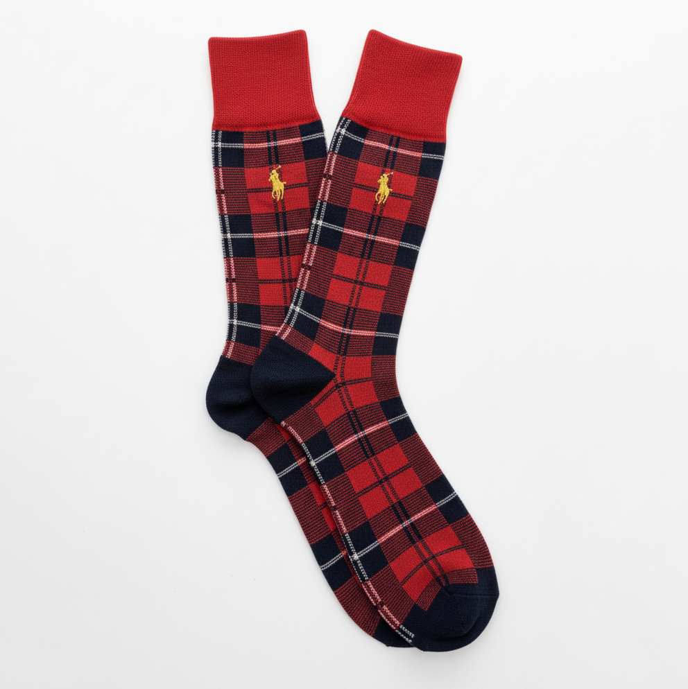 RL POLO RED & NAVY ROYAL STEWART TARTAN SOCKS