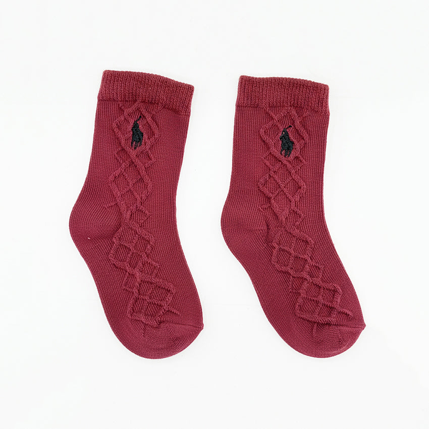 RL POLO BURGUNDY CABLE ARGYLE SOCKS (0-2YRS)