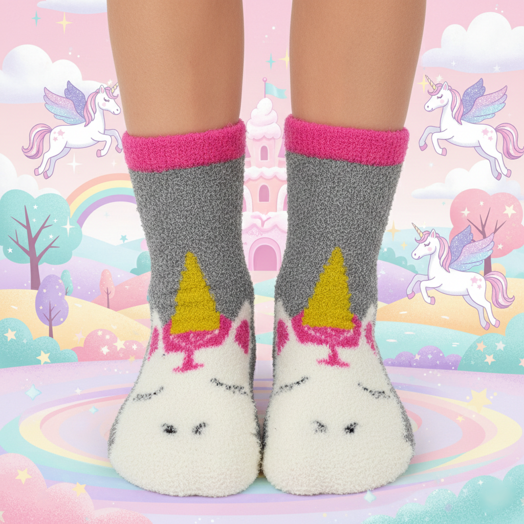 MAGICAL UNICORN FUZZY SLIPPER WARM SOCKS (5-15yrs)