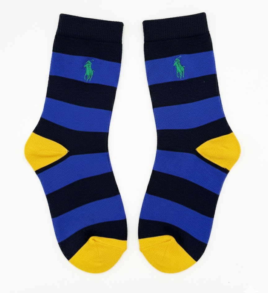 RL POLO ROYAL BLUE & BLACK BLOCK SOCKS (5-10yrs)