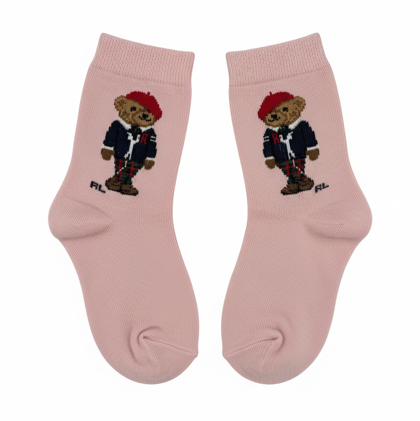 Très chic! The Parisian Pink Bear socks bring fun European flair to any outfit. The gentle pink hue and the bear wearing a classic beret and plaid pants are a delightful combination. Designed with a soft, breathable fabric, these are the cutest way to keep little toes cozy.
