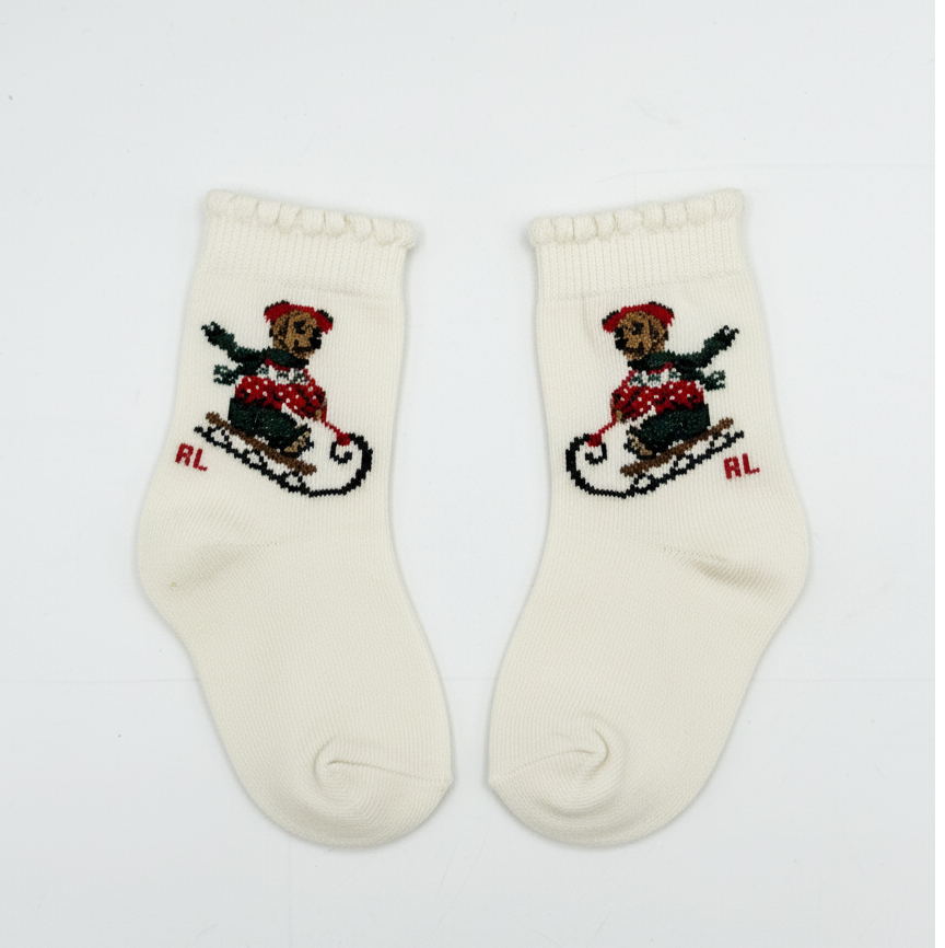 RL POLO SKIER BEAR CREAM SOCKS (0-2YRS)
