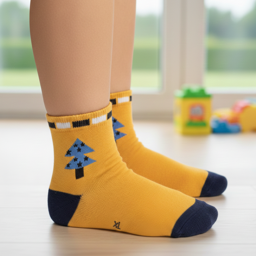 SUNNY YELLOW PINE TREE ANKLE SOCKS (4 - 7 YRS)