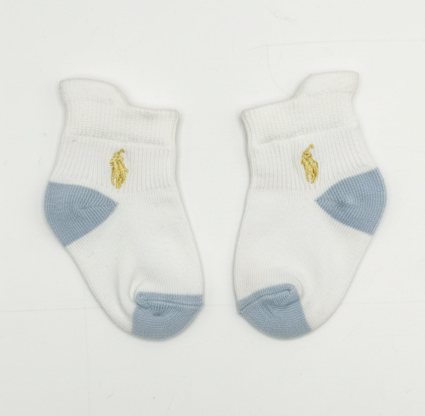 RL POLO WHITE & BLUE TIPPED ANKLE SOCKS (0-2YRS)