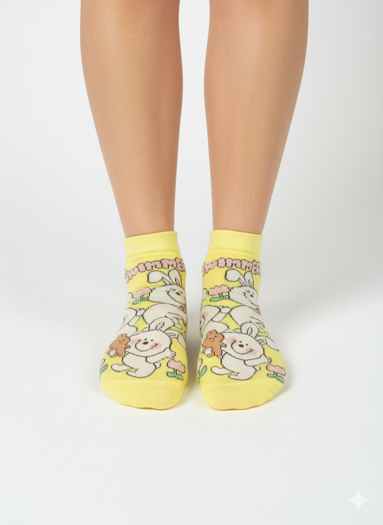 YELLOW HAPPY BUNNY ANKLE SOCKS